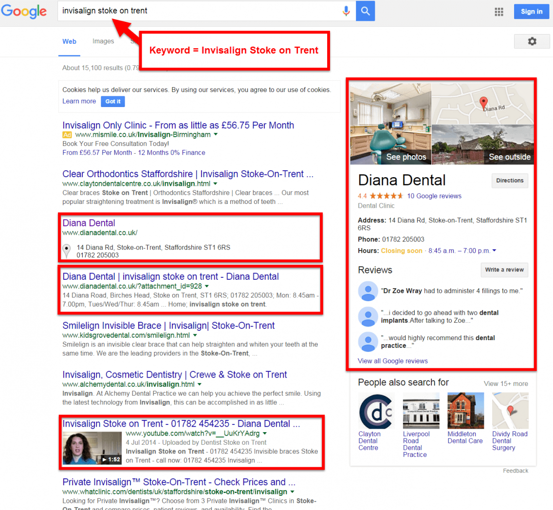 The image below shows our results from 2015 for the keyword Invisalign Stoke on Trent.